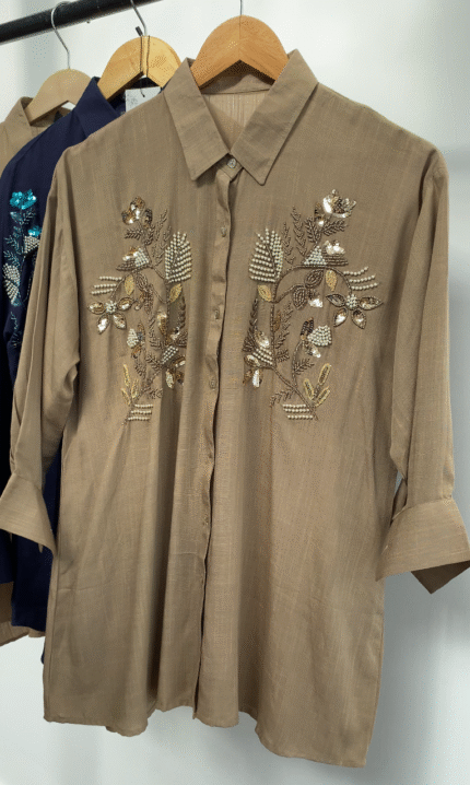 Luxe tie-dye set- light pink and steel blue grey heavy aari embroidery shirt with steel blue grey culotte pants and pure tie-dye organza dupatta